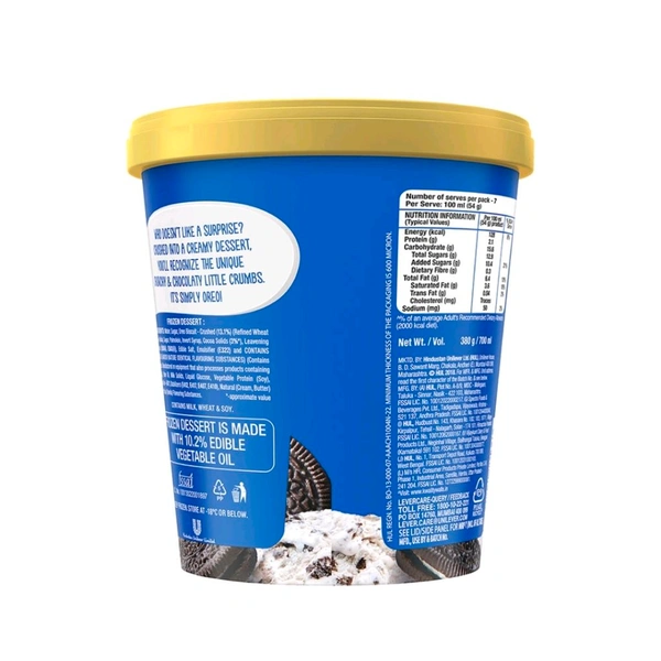 Kwality Walls Oreo & Cream Frozen Dessert Tub 700 ml