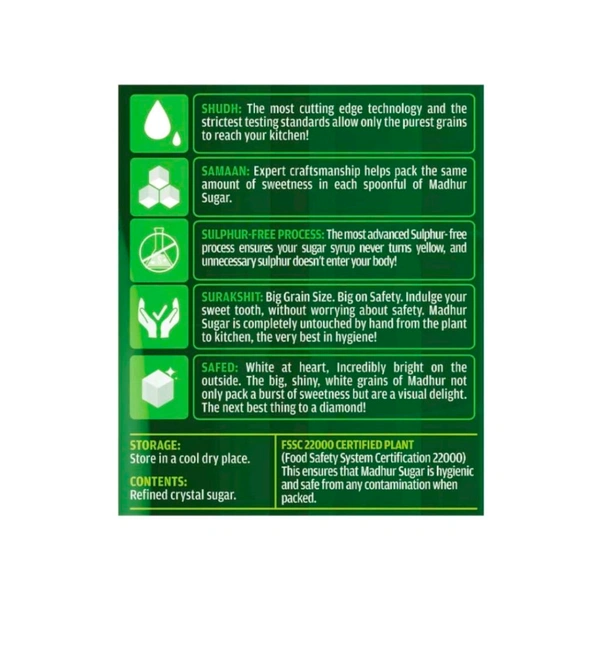 Experience the sweetness of purity with Madhur Pure & Hygienic Sulphurless Sugar (M30). Crafted with care and precision, this premium-quality sugar is designed to enhance the taste of your favorite recipes while prioritizing your health and well-being. Whether you're baking a cake, sweetening your tea, or adding a touch of flavor to your desserts, Madhur Sugar ensures every bite is delightful and guilt-free.