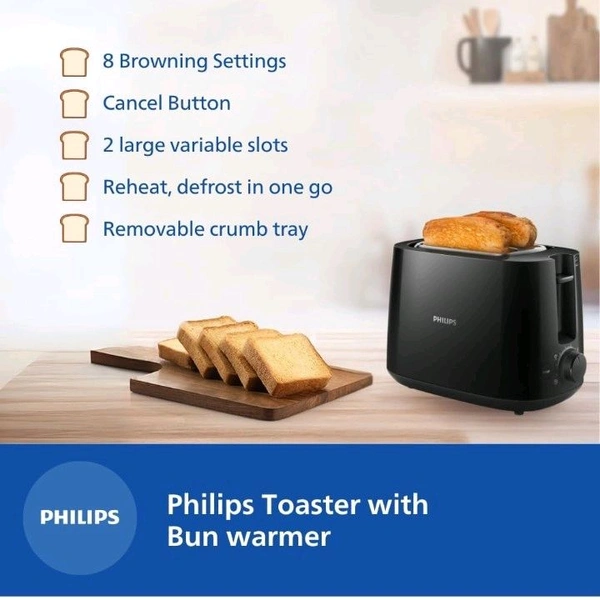 Philips HD2582/90 Two Slice Pop-Up Toaster with Bun Warmer - Perfect Toasts Every Time!